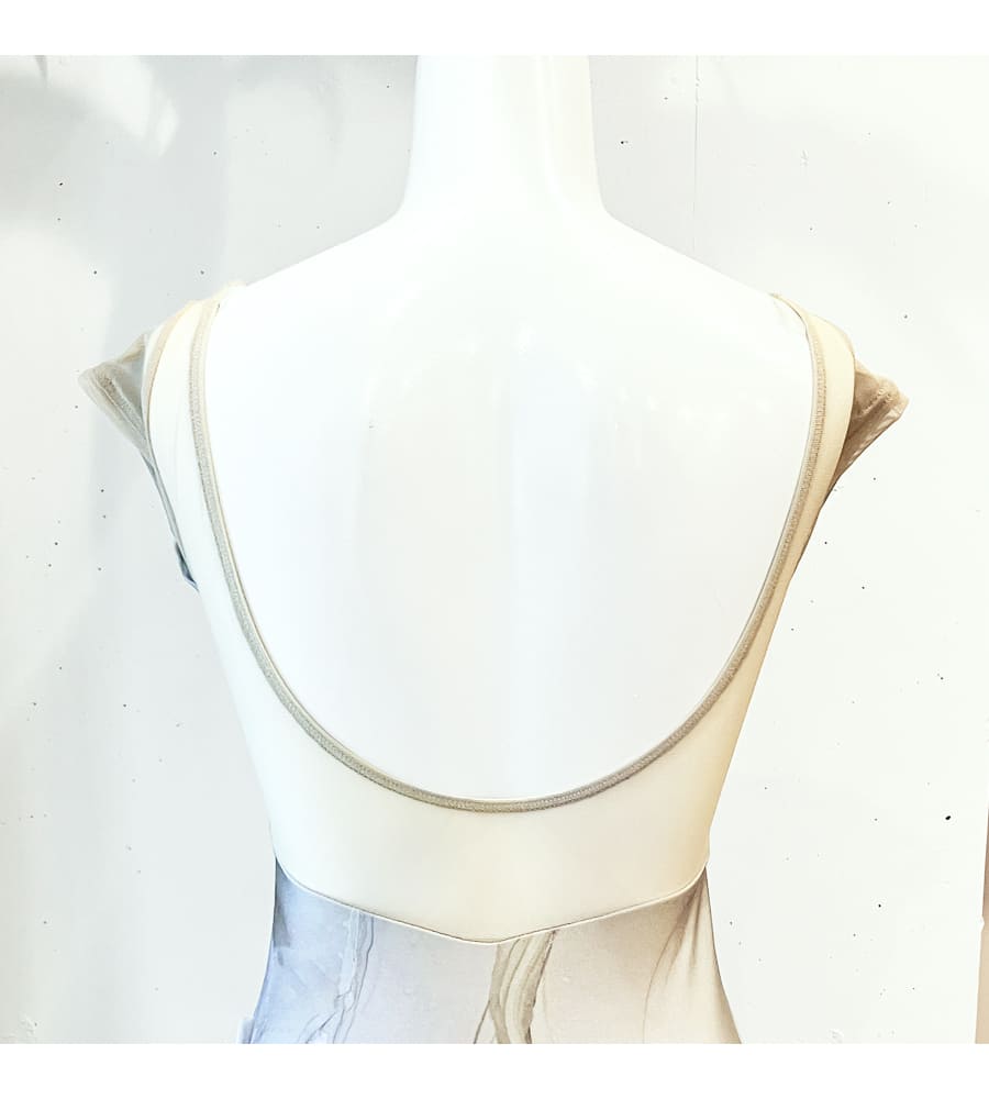 ボディ全体に配されたマーブル模様が目を惹く優美でしなやかな印象のレオタード。
