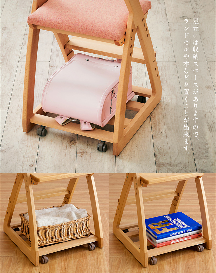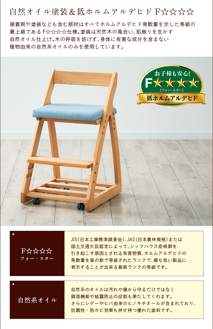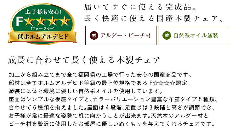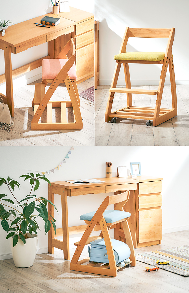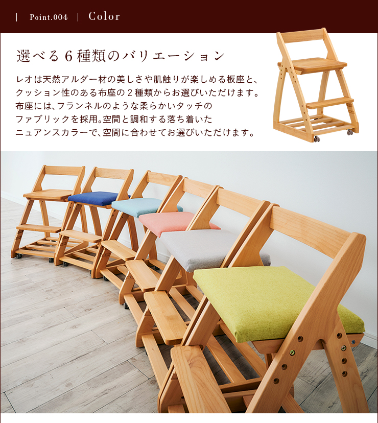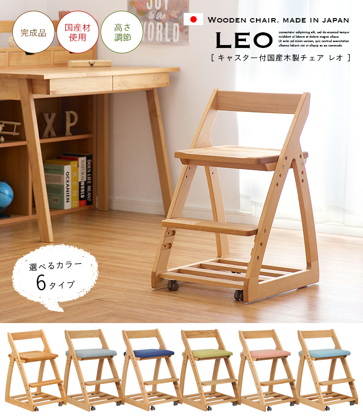 完成品 無垢材使用 高さ調整機能 キャスター付 国産 学習机椅子 木製 学習チェア 勉強椅子 椅子 LEO(レオ) 6色対応 杉工場