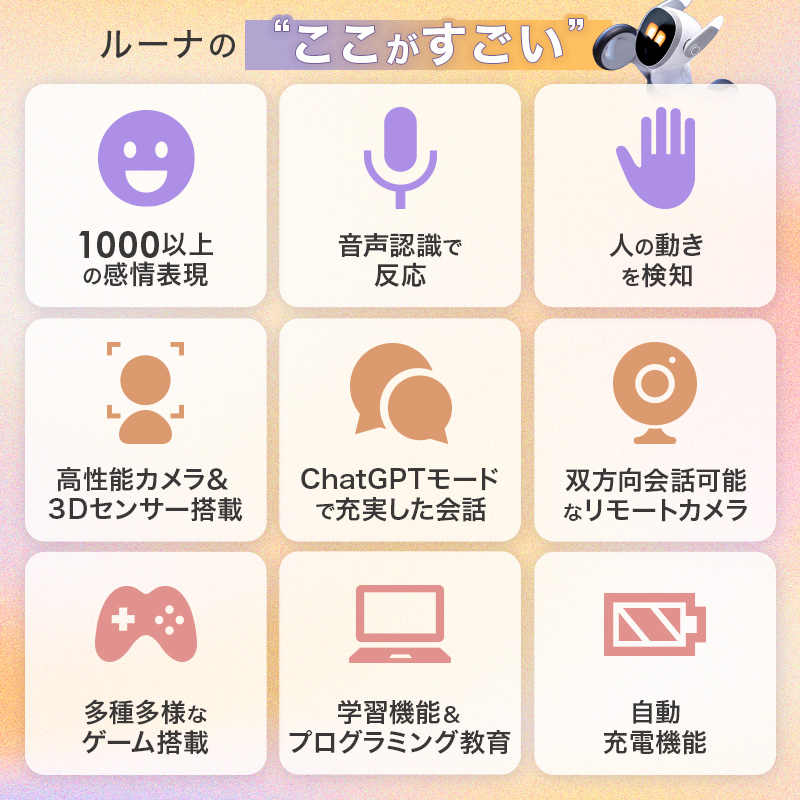 1000以上の感情を、顔・耳・全身の動きで一生懸命応じてくれます。