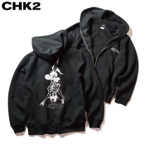 "Artwork by Leo" CHK2 ジップパーカー スケルトンコヨーテ 黒 ブラック